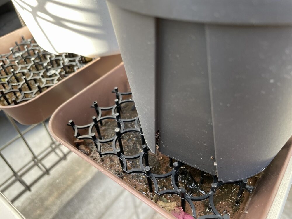 あまり指摘されませんが、植木鉢を水受け皿の上に直接乗せて栽培すると、排水性も通気性も悪くなりがち。