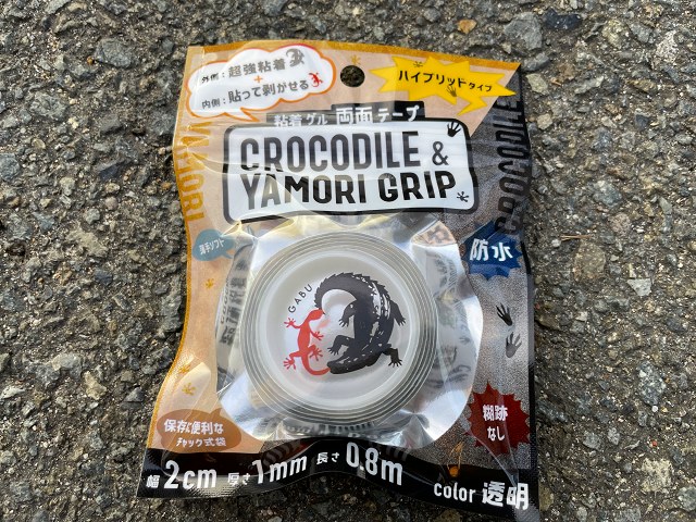 片面が強力接着、もう片面が貼って剥がせるヤモリテープなのが、ミソ