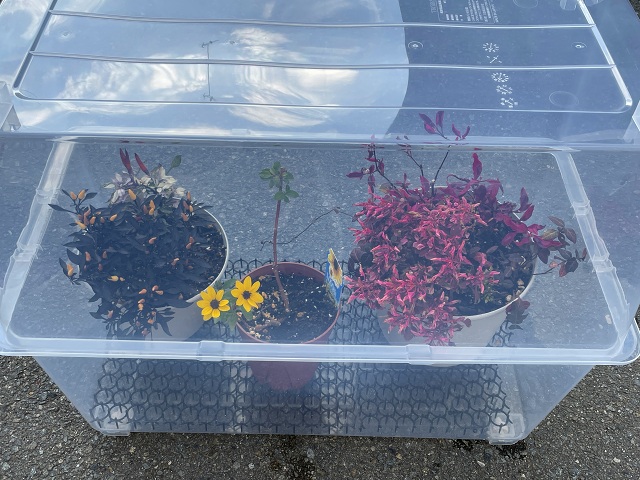 実は、ホームセンターなどで手に入る衣装ケースを利用することで、冬の寒さから大切な植物を守る”簡易温室”を、簡単に作ることができます。
