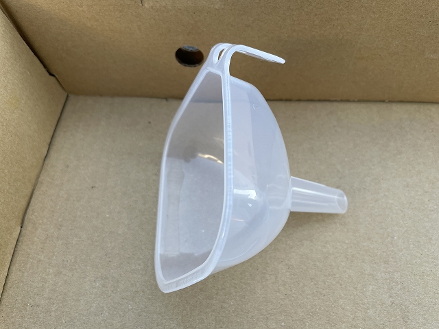 エンジンオイルの注ぎ口に入るように、小さいものが良いです