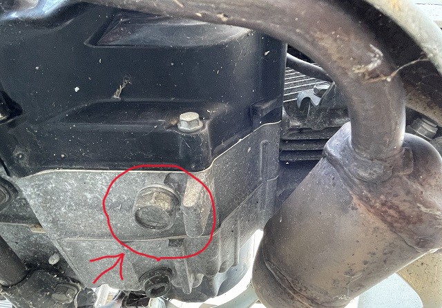 オイルを抜くためのボルトの位置を確認します