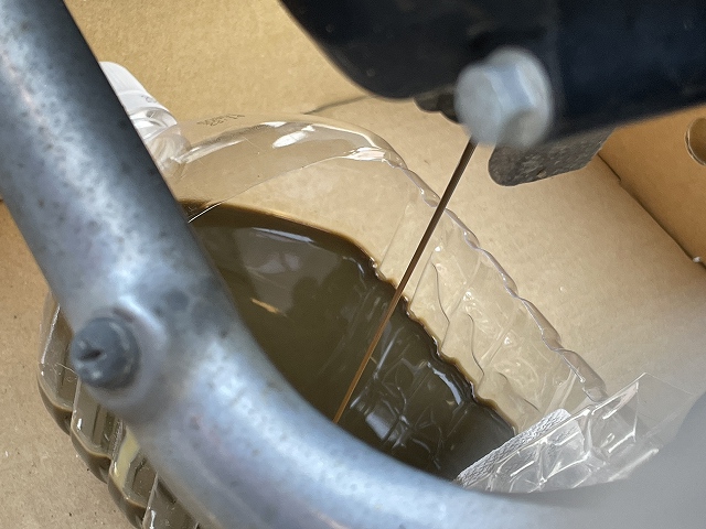 なぜなら、高確率でオイルがこぼれて、地面を汚してしまうからです(汗)