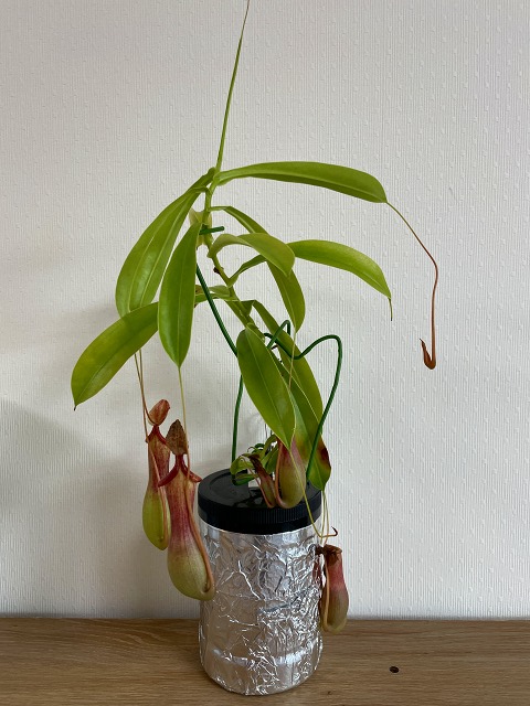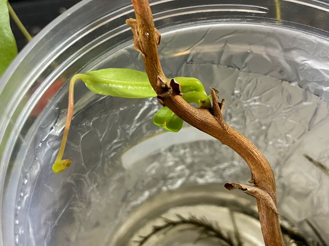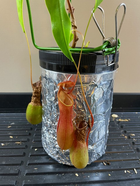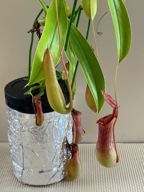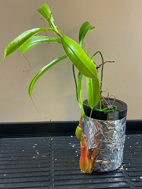 考えてみれば、ウツボカズラは根から水を吸収し、葉から栄養を取ることができるので、完全分業制(?)で育てることができるのかもしれません。