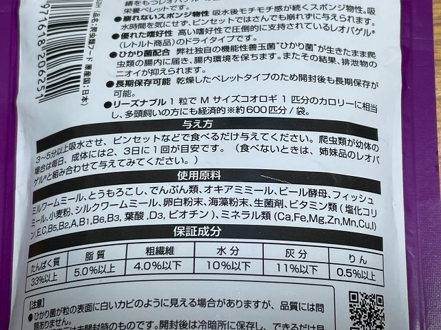 前回与えた爬虫類のエサは消化が悪そうなので、違うエサにしてみます。