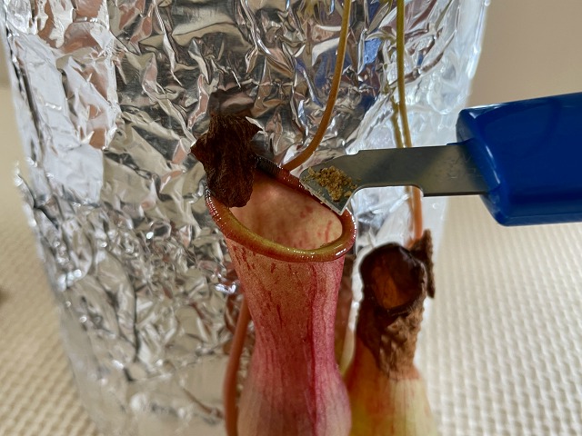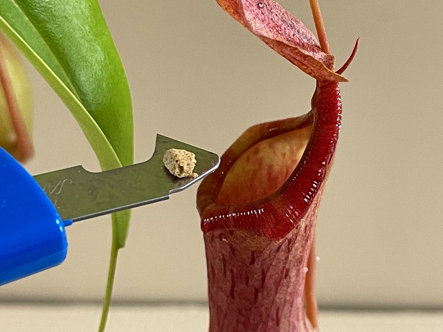 ちなみに、一般的には「食虫植物にエサは与える必要はないし、下手にエサを与えると捕虫葉が枯れる場合がある」というのがセオリー(定石)です。