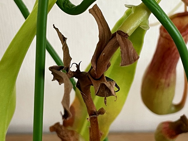 ちなみにウツボカズラの茎は、ある程度成長すると「木質化」するので、今の状態が悪いワケではありません。