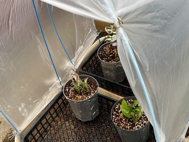 これまで4鉢とも、半透明のビニールで作ったトンネル内で育てていました。