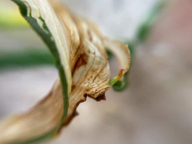なぜなら、開花後は来年に向けて球根を太らせる必要があるのですが、フローズンクイーンの葉は半透明のため効率よく光合成が出来ず、球根が大きくなりにくいのではないかと考えているからです。