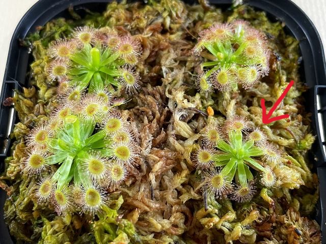 根の枯れた部分も取りたかったのですが、根がミズゴケに絡んで持ち上がり、