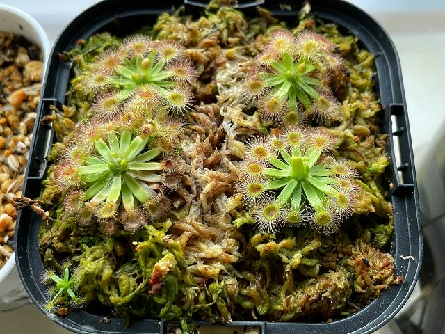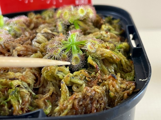 手軽で、安くて、おそらく消化も良いフレーク状のエサは、きっとモウセンゴケのエサにピッタリだと思います。