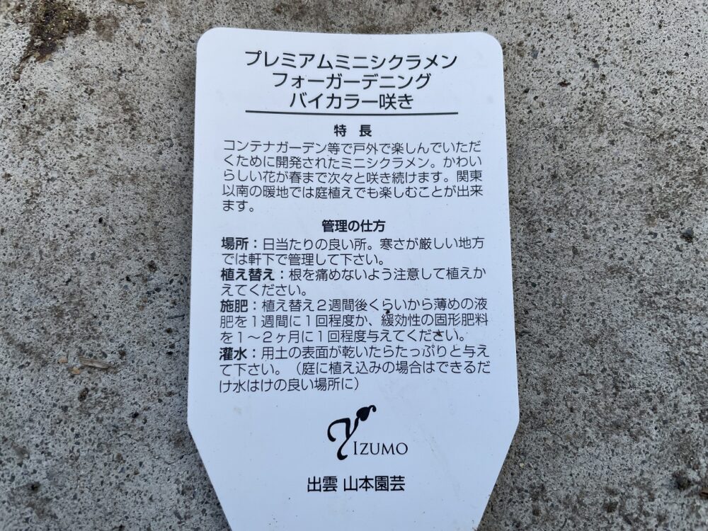 - いくつか種類があるのですが、「シクラメン・ヘデリフォリウム」や、「シクラメン・コウム」は特に耐寒性があります。