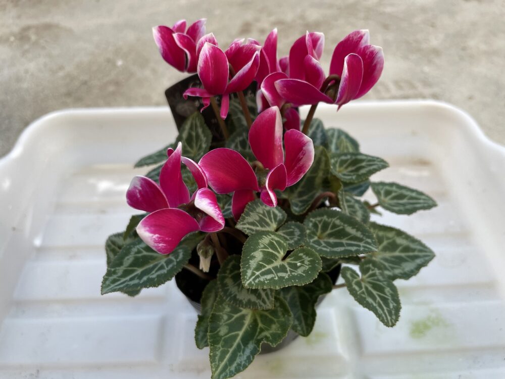 最高温度:20℃を超えると危険 - ミニシクラメンやガーデンシクラメンよりも大きく、5~6号サイズで流通してることが多いです。