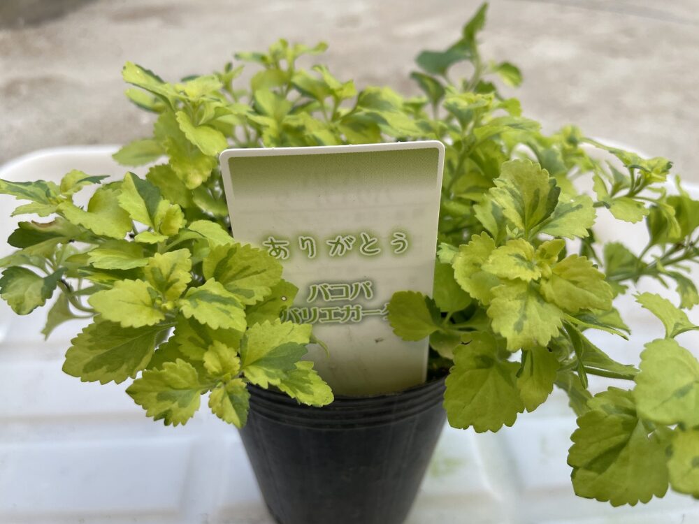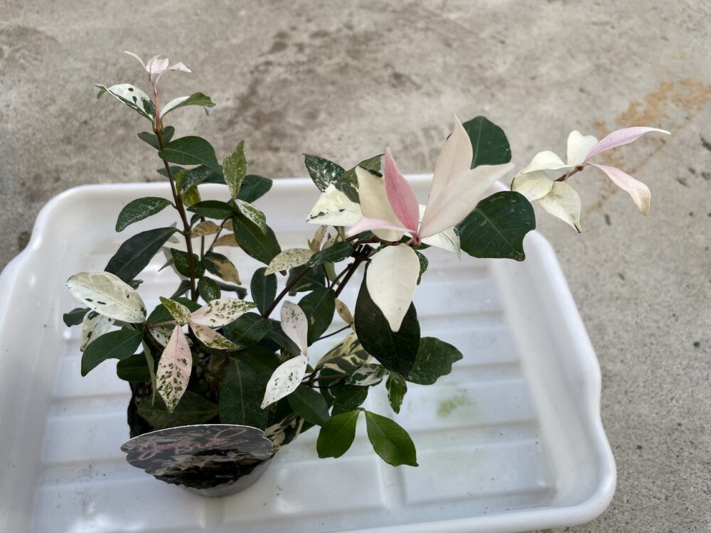 真っ白な葉と薄い桃色の先端が気に入ったので、連れて帰りました。