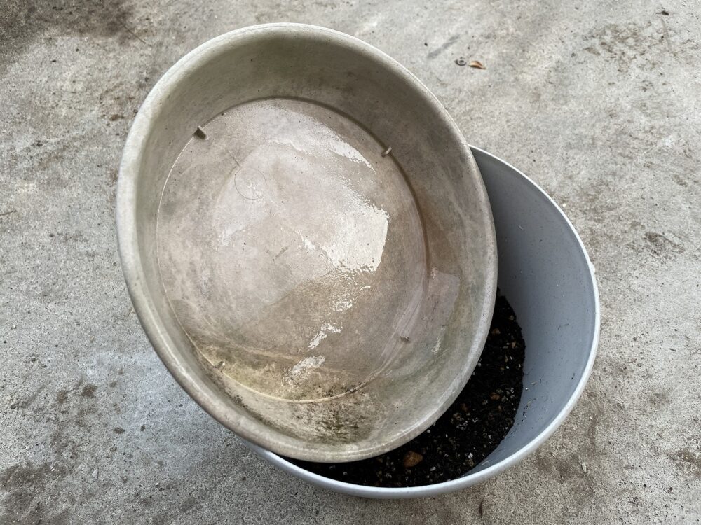 鉢にピッタリ合う水受け皿を使うと、高さがイメージできて便利です。