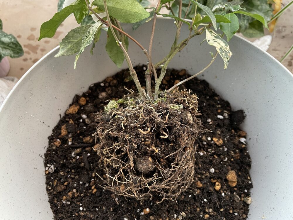 おそらく強いので、あまり気にせずに適当に根鉢の土を落として植えることにします。
