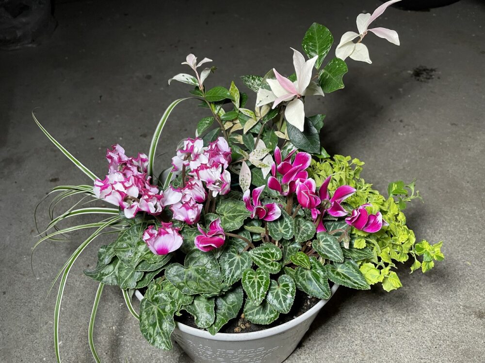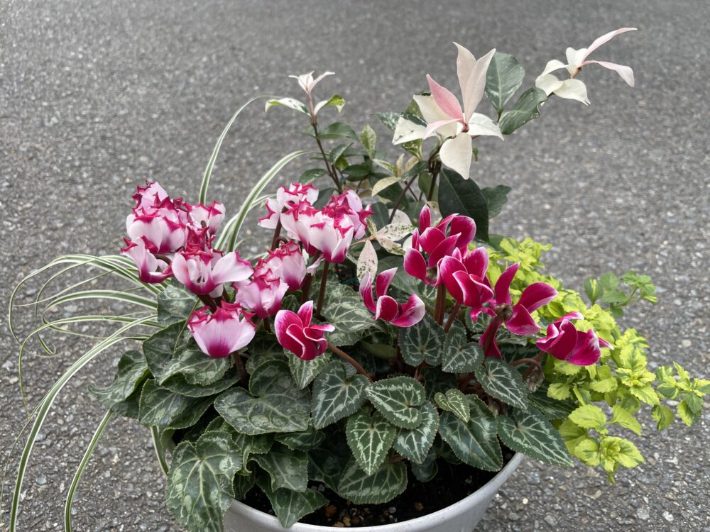 寄せ植え経験が浅いので、実は苗を多く買ってしまい、入りきらなかったガーデンシクラメンがあります。