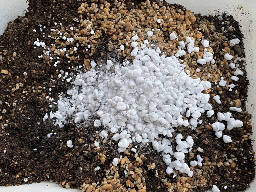 あと、排水性が良いように、パーライトを1割ほど加えています。