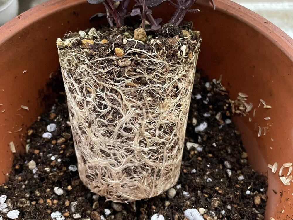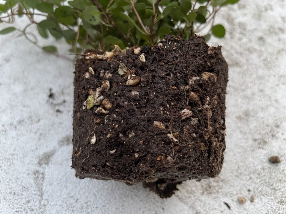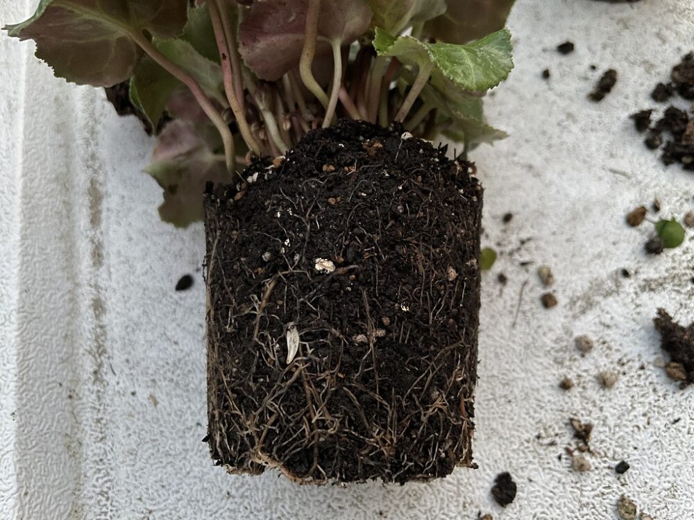 シクラメンの根っこは細くて繊細なので、根鉢を崩さないように気を付けます。