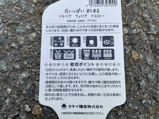 妖精をイメージしたタグで、花は小さくても株は大きく育つそうです
